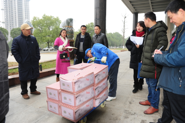 (通讯员李金丽)冬雨飞扬,冷风漫舞,学校2018年春节慰问教职工物资按照预定工作计划,于1月14日上午开始发放,学校党委副书记许邦官,组织部长周忠、机关党委副书记毕松涛和校工会等一行,亲临物资发放现场视察和指导相关工作。